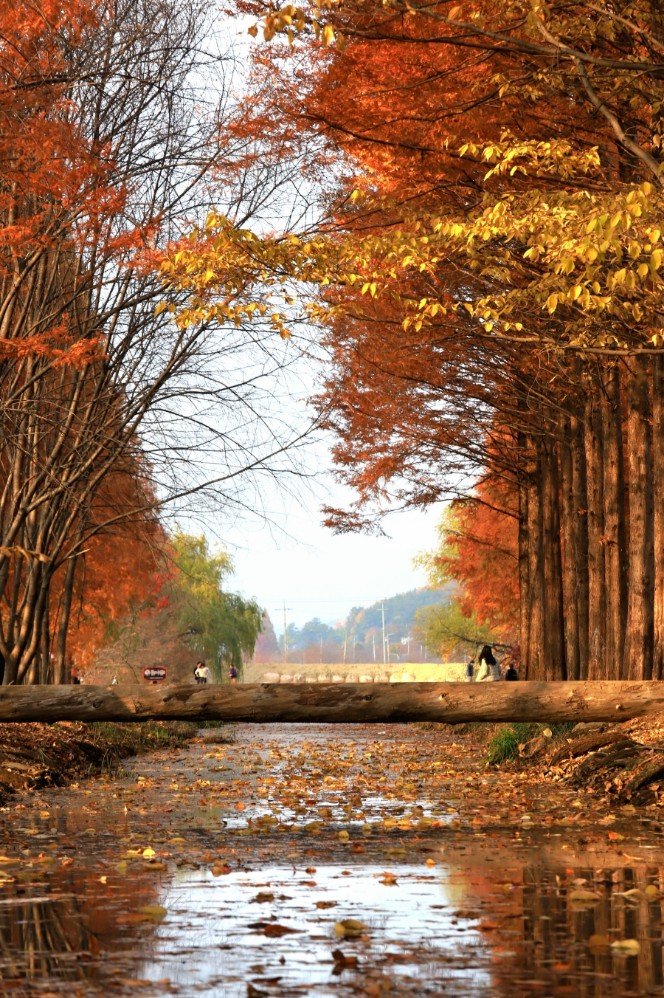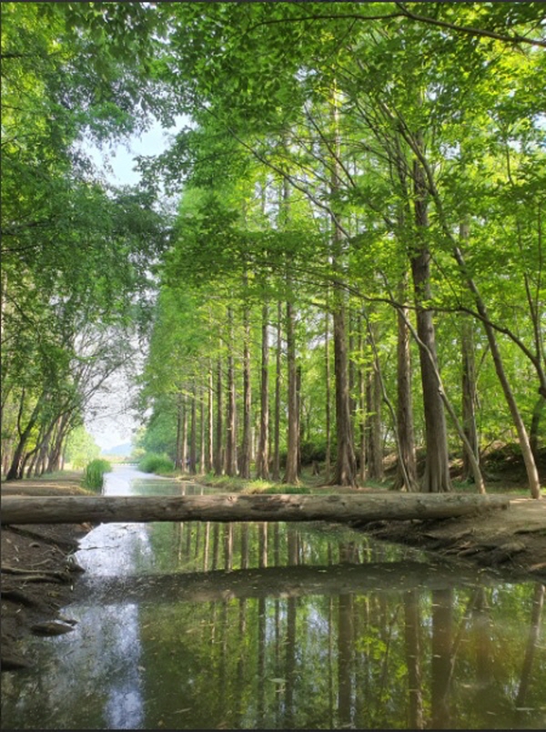 메타세쿼이아 포토존에서 또한 볼 수 있는 것은 통나무 다리와 실개천입니다. 통나무 다리는 메타세쿼이아 나무 사이로 흐르는 물 위로 건널 수 있는 다리입니다. 이 다리는 실개천이라는 작은 개울을 따라 만들어진 것으로, 물소리와 함께 즐길 수 있습니다. 통나무 다리에서는 메타세쿼이아 나무들과 실개천의 모습을 한 눈에 볼 수 있으며, 사진을 찍기에도 좋은 포인트입니다.