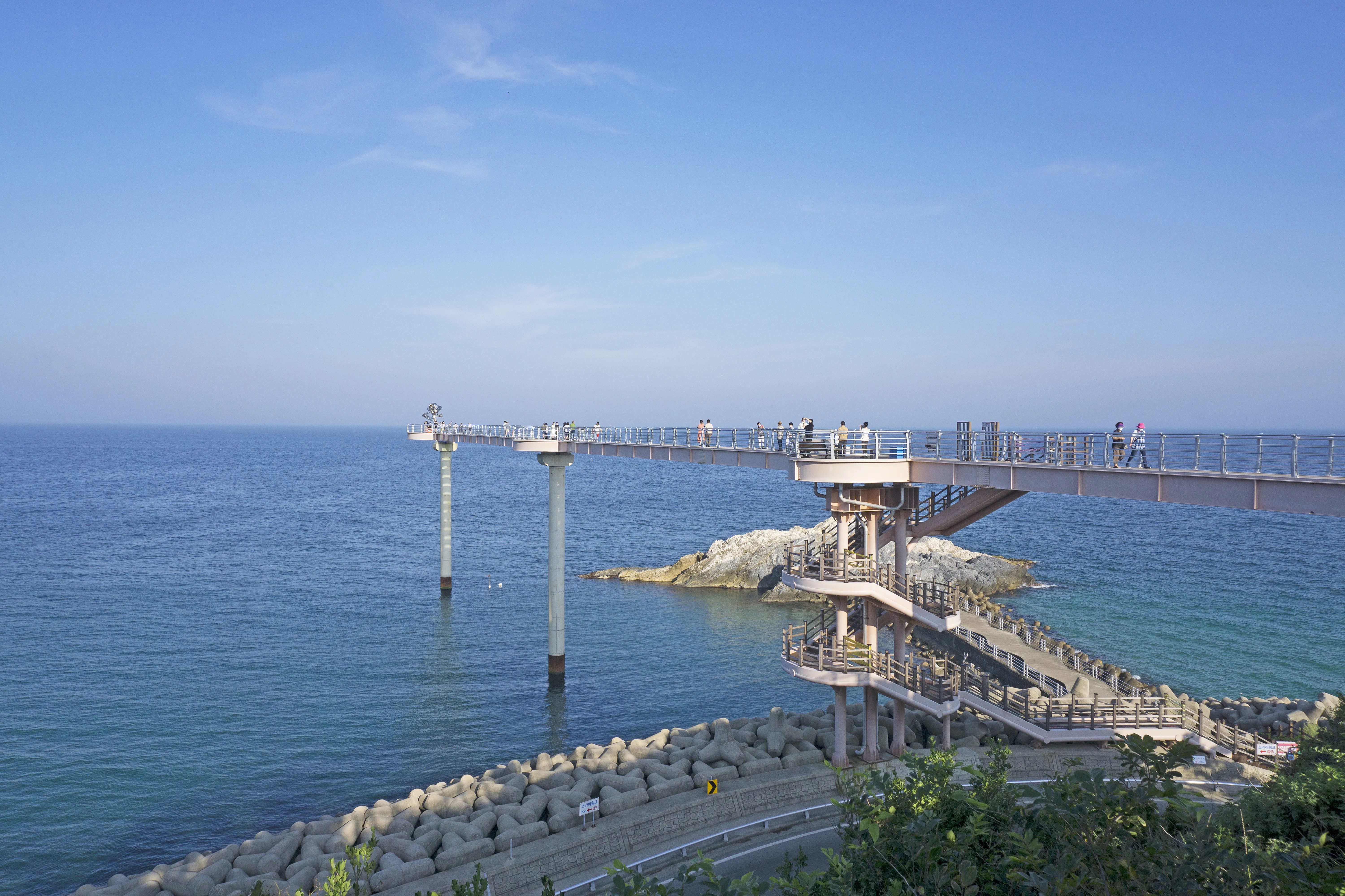 경북 울진군 후포면 후포리 산141-21에 위치한 등기산 스카이워크는 바다를 한눈에 내려다볼 수 있는 아름다운 곳입니다. 울진군의 대표적인 명소로, 겨울철에도 많은 관광객들이 방문합니다.