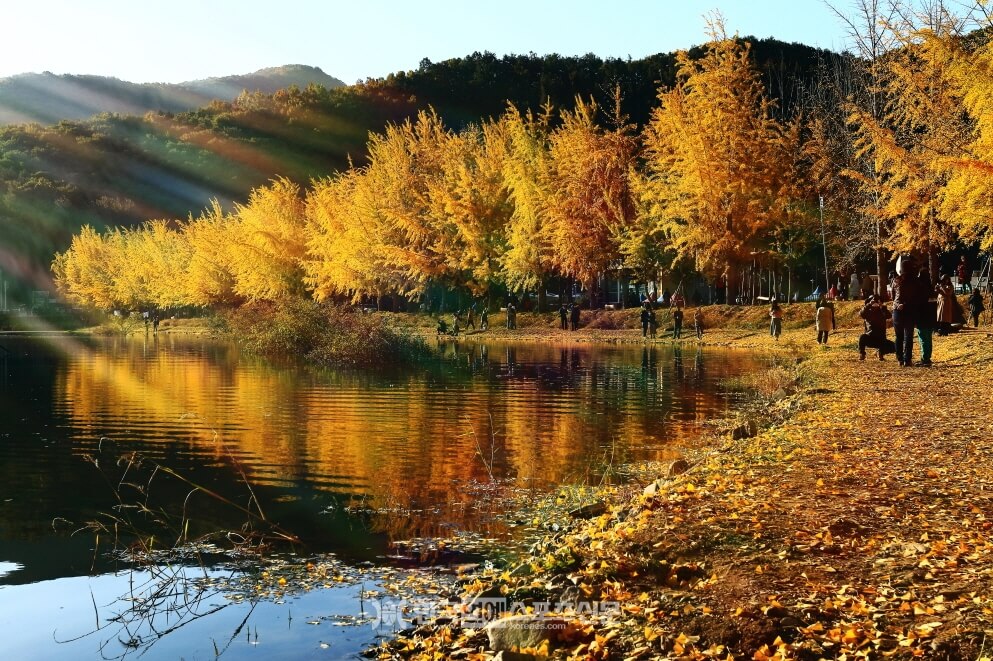2. 괴산 문광저수지: 은행나무길이 둘러싼 작은 농촌마을